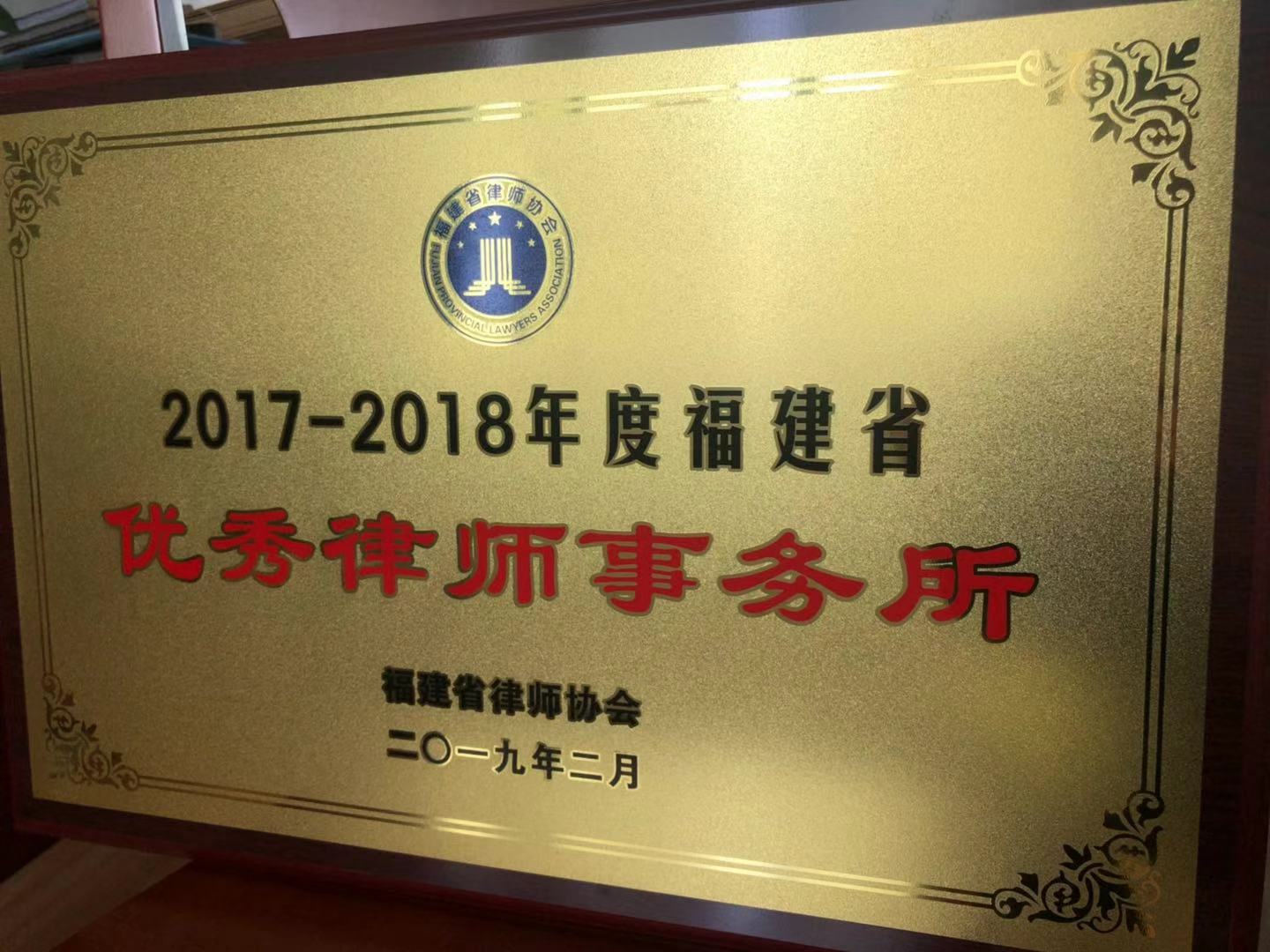 我市福建扬都律师事务所被授予“2017-2018年度福建省优秀律师事务所”称号。